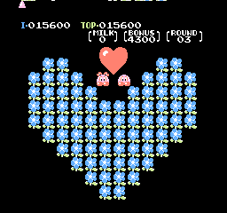 Unlike this game's obvious inspiration, Donkey Kong, there's no external force tearing the couple apart at the end of each apparent success; presumably, Milk's girlfriend eventually tires of his gambling and womanizing and throws him out. He wanders off in a drunken haze; eventually he gets her new address from her confused, passive-aggressive mother, and their whole insane relationship plays out another cycle.